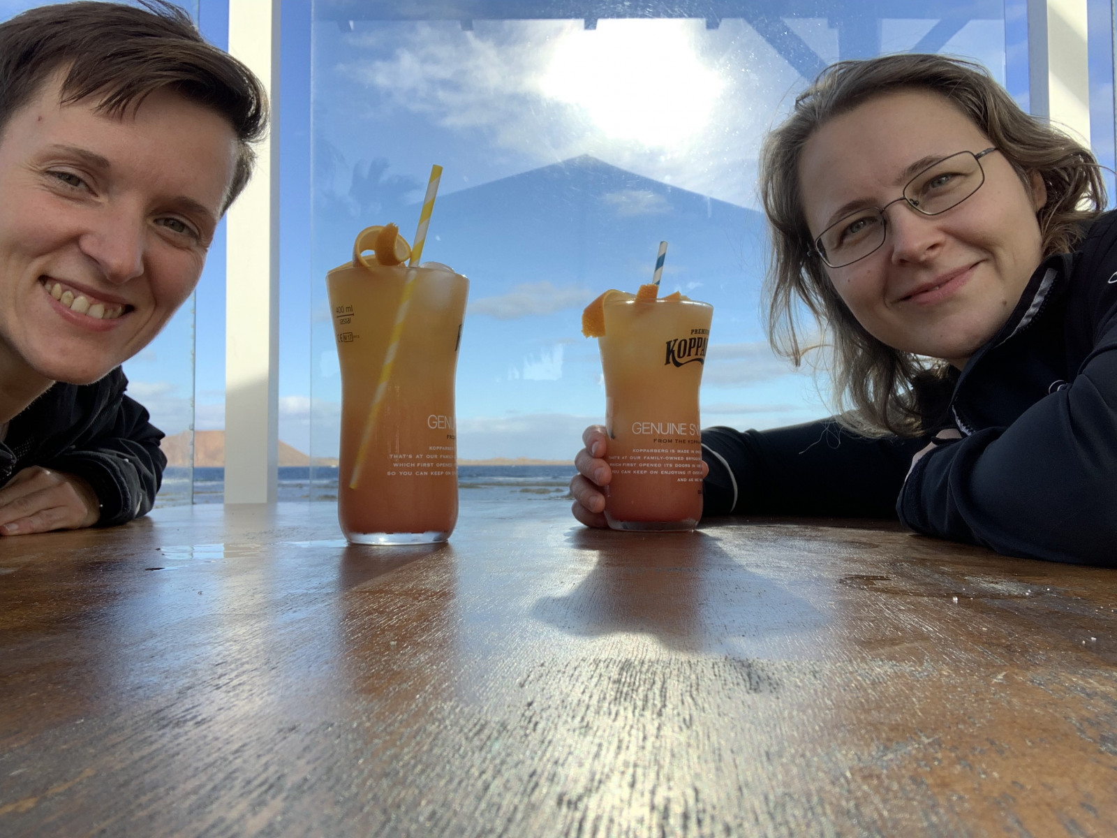 Tja zack und bum, da sind wir – auf Fuerteventura. Irre irgendwie…. aber nur irgendwie, denn realisiert haben wir das ganze natürlich noch nicht. Es ist zwar ein anderes Klima und ziemlich windig hier, man sieht die surfer directamente von unserem Apartment aus, aber irgendwie fühlt es sich doch noch sehr deutsch an. Was vermutlich daran liegt, dass uns hier jede*r Zweite auf Deutsch anspricht oder wahlweise auch auf Englisch. Aber wir wollen doch Spanisch lernen…