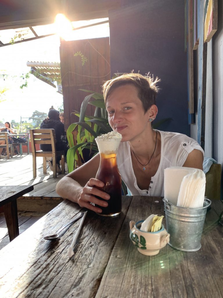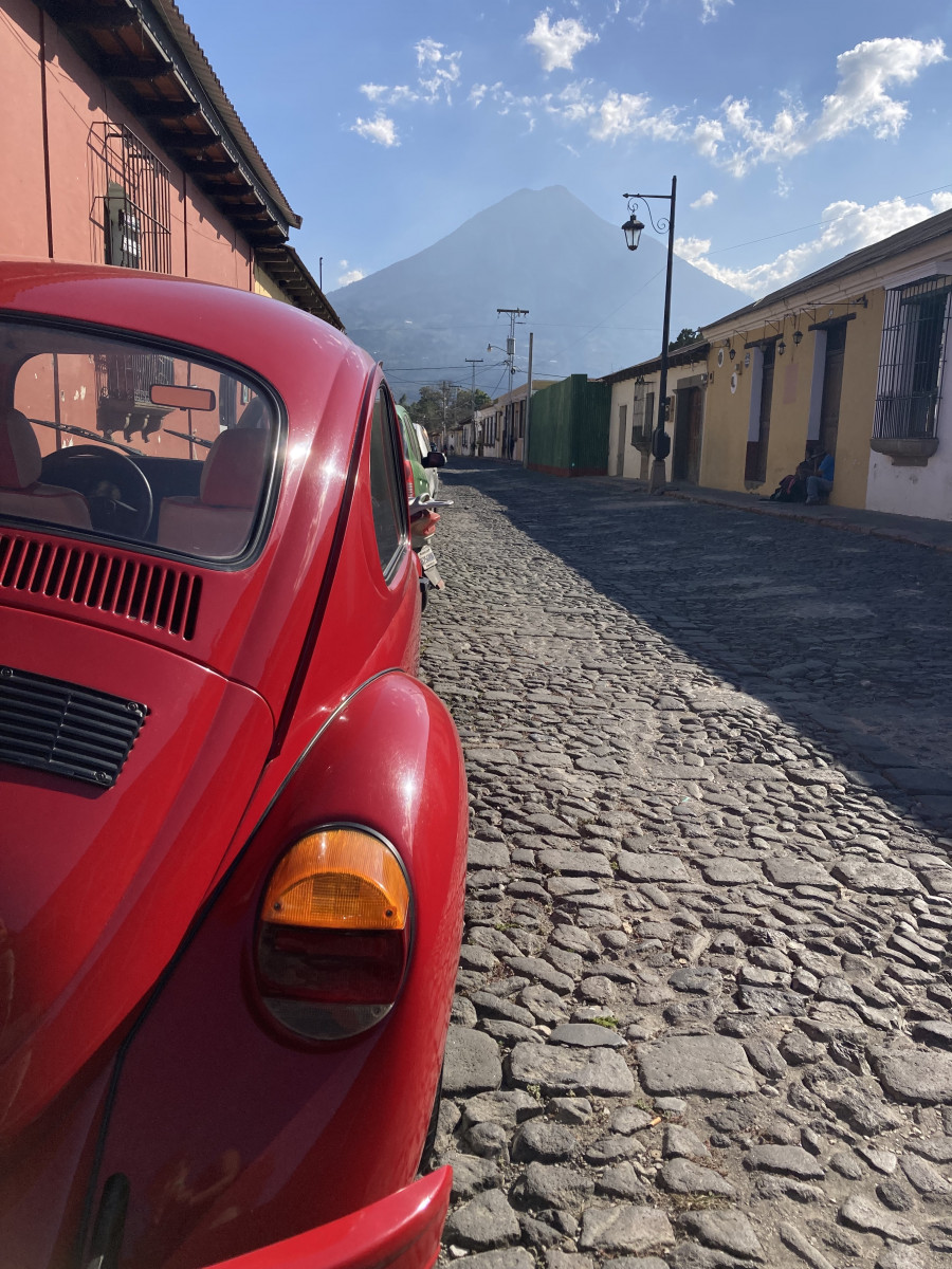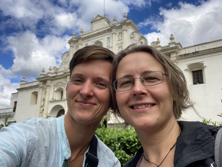 Von Lanquín ging es weiter nach Antigua – eine von Vulkanen umgebene Kleinstadt im Süden Guatemalas, die für ihre Architektur aus der spanischen Kolonialzeit bekannt ist. Da wir nicht wussten, wie anstrengend die Fahrt durch die Berge wird, legten wir einen Zwischenstopp für eine Nacht in Cobán ein. Erst schien es eine entspannte Fahrt zu werden, doch der Fahrer langweilte sich schnell und schaute nebenbei Videos auf seinem Handy und schrieb WhatsApp Nachrichten. Nichts für sicherheitsbedürftige Europäer*innen – vor allem, wenn entgegenkommende LKWs geisterfahrermäßig auf der Gegenfahrbahn überholen. Letztendlich geht nur: Augen zu und durch!