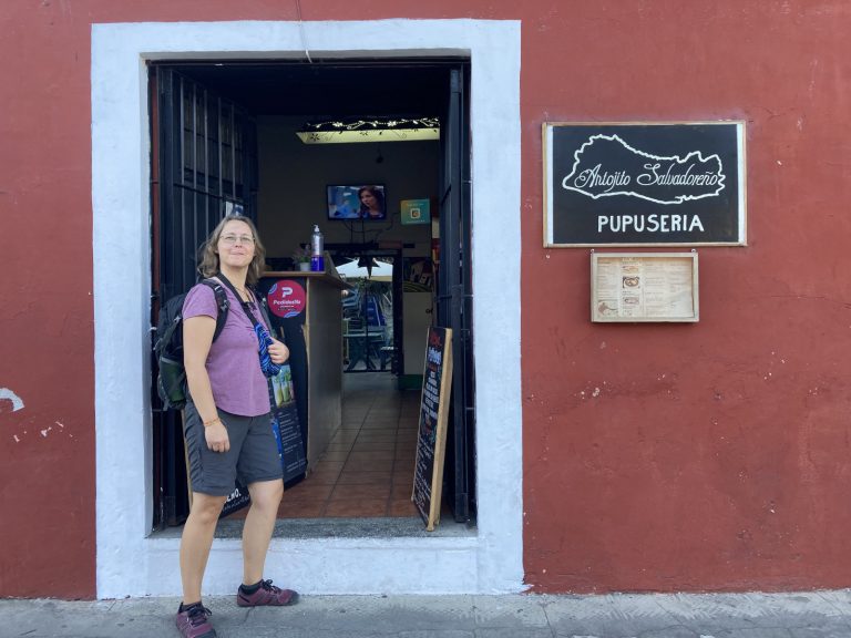 Abends haben wir gern mal einen der genialen, veganen Burger im Restaurant Wachuma gegessen oder auch kleine mit Bohnenmus und Käse gefüllte Teigfladen namens Popusas – eigentlich ein typisches Essen aus El Salvador – in einem kleinen, von drei Frauen betriebenen Hinterhofrestaurant namens Antojito Salvadoreño.