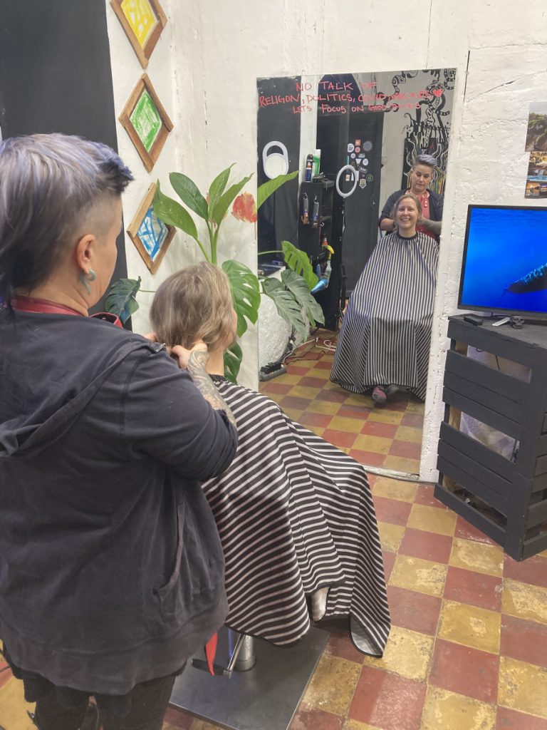 Darüber hinaus sind wir in Antigua auf einen verrückten Friseurladen, Twisted Scissors, aufmerksam geworden. Eine nach Guatemala ausgewanderte, ziemlich lustige und nicht auf den Mund gefallene Amerikanerin schmeißt den Laden und wir hatten ordentlich Spaß bei unserem Termin mit der leicht verrückten Type. Doro wollte ja schon länger mal zum Friseur, weil schon länger überfällig und ich…naja…wollte eigentlich gar nicht mit. Aber nach langen Überredungskünsten, habe ich mich dann tooootal freiwillig entschieden, die gute Frau Friseurin einfach mal machen zu lassen. Sie hat sich dann auch ordentlich ausgetobt und mir sowas wie eine Kurzhaarfrisur verpasst, mit der ich dann doch sehr zufrieden war.