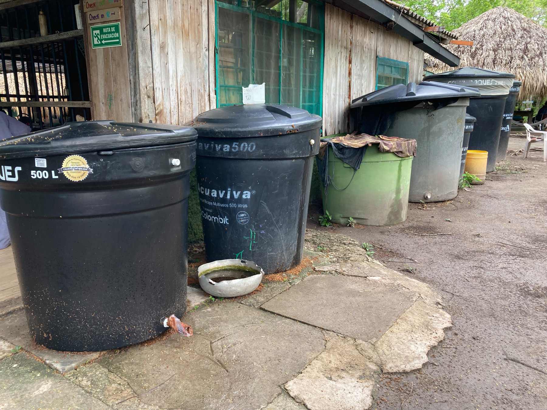 Irgendwann kamen wir dann am richtigen Ende unserer Insel an und hatten es zum Glück nicht mehr weit zu unserer Unterkunft dem Eco-Hostel Arte y Aventura. Wir wurden nett empfangen und nach einer kurzen Inseleinführung in unser Zimmer geleitet. Leider schien alles etwas heruntergekommener und auch dunkler, als auf den Bilder, aber das war nichts Neues für uns. Ganz Eco, gab es weder Dusche noch Klospülung, denn auf der Insel ist Wasser ein wertvolles Gut. In unserem Bad standen zwei Eimer. Ein kleiner mit Süßwasser zum Abduschen und Zähneputzen und ein großer mit Salzwasser für die Toilette. Da man sich nach dem Salzwasserbaden mit Süßwasser abduschen sollte, war der kleine Eimer recht schnell leer, auch wenn wir sparsam waren. An sich wohl kein Problem, da er jeden Tag aufgefüllt wird, aber die Chefin war für ein paar Tage in Cartagena unterwegs und der Chef war vor allem ein guter Koch, aber mit den anderen Aufgaben scheinbar etwas überfordert. Also mussten wir öfter mal an Süßwasser erinnern und auch an ein paar andere Dinge. Auch andere berichteten, dass manche Dinge gerade schleppend liefen. Ein Pärchen bekam z.B. schon seit Tagen kein Moskitonetz, was dort durchaus ein Problem darstellt. Mücken gab es sehr viele und diese ließen auch nicht mit sich reden. Vor allem früh morgen und zur Dämmerung konnte man eigentlich nur unter dem Moskitonetz liegen oder irgendwo am Wasser sein, wenn es windete. Die Fenster waren ohne Gase, sodass man sich auch nicht ungestochen im Zimmer aufhalten konnte. Da halfen auch die Rauchdinger nicht viel, die wir für das Zimmer bekommen hatten. Ihr merkt schon, so richtig erholsam war das Inselleben nicht. Zwar war das Essen lecker und die Leute nett, auch haben wir abends lange mit anderen Reisenden zusammen gesessen und hatten nette Gespräche, aber so richtig hat es für uns nicht gepasst mit der Unterkunft. Auch der eigentliche Wunsch – Ruhe – wurde nicht immer erfüllt.