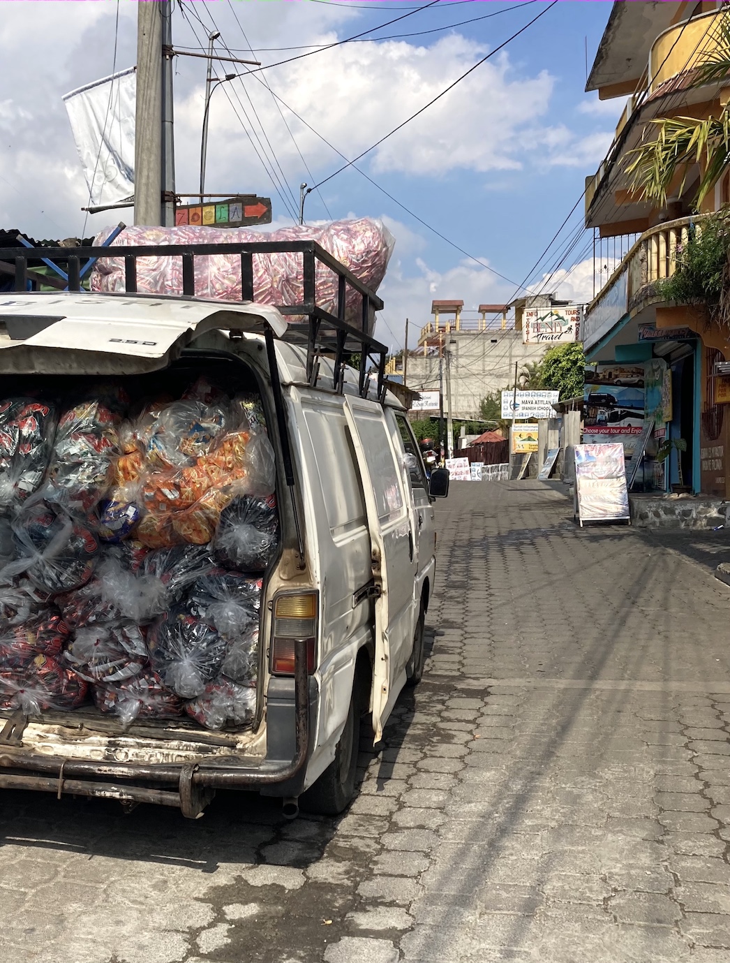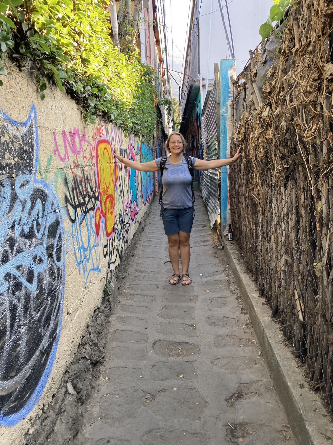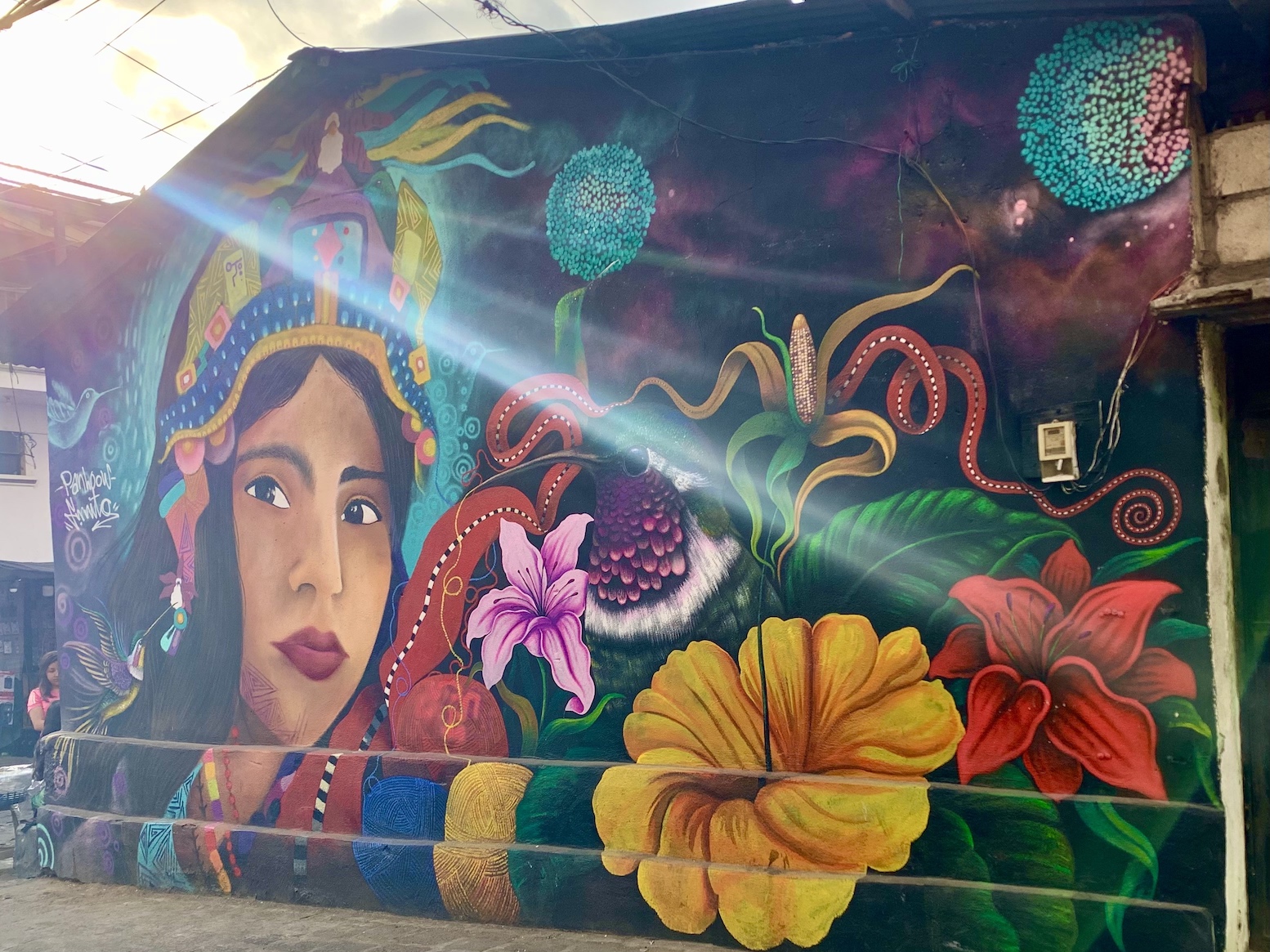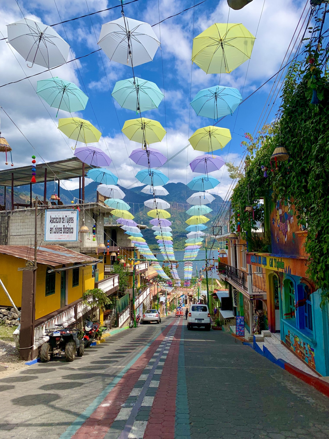 Der Ort San Juan ist recht klein, aber sehr angenehm und gespickt mit vielen Wandmalereien, Kunsthandwerksläden und Cafés, in denen es sich bei einem Mocca oder kaltem Kakao sehr gut aushalten lässt. Hier gibt es weniger Tourismus und man sieht mehr Local-Live. Besonders gut haben uns auch die geschmückten Straßen gefallen. Mal hingen viele Schirmchen über einem, mal kleine Holzinstrumente etc.