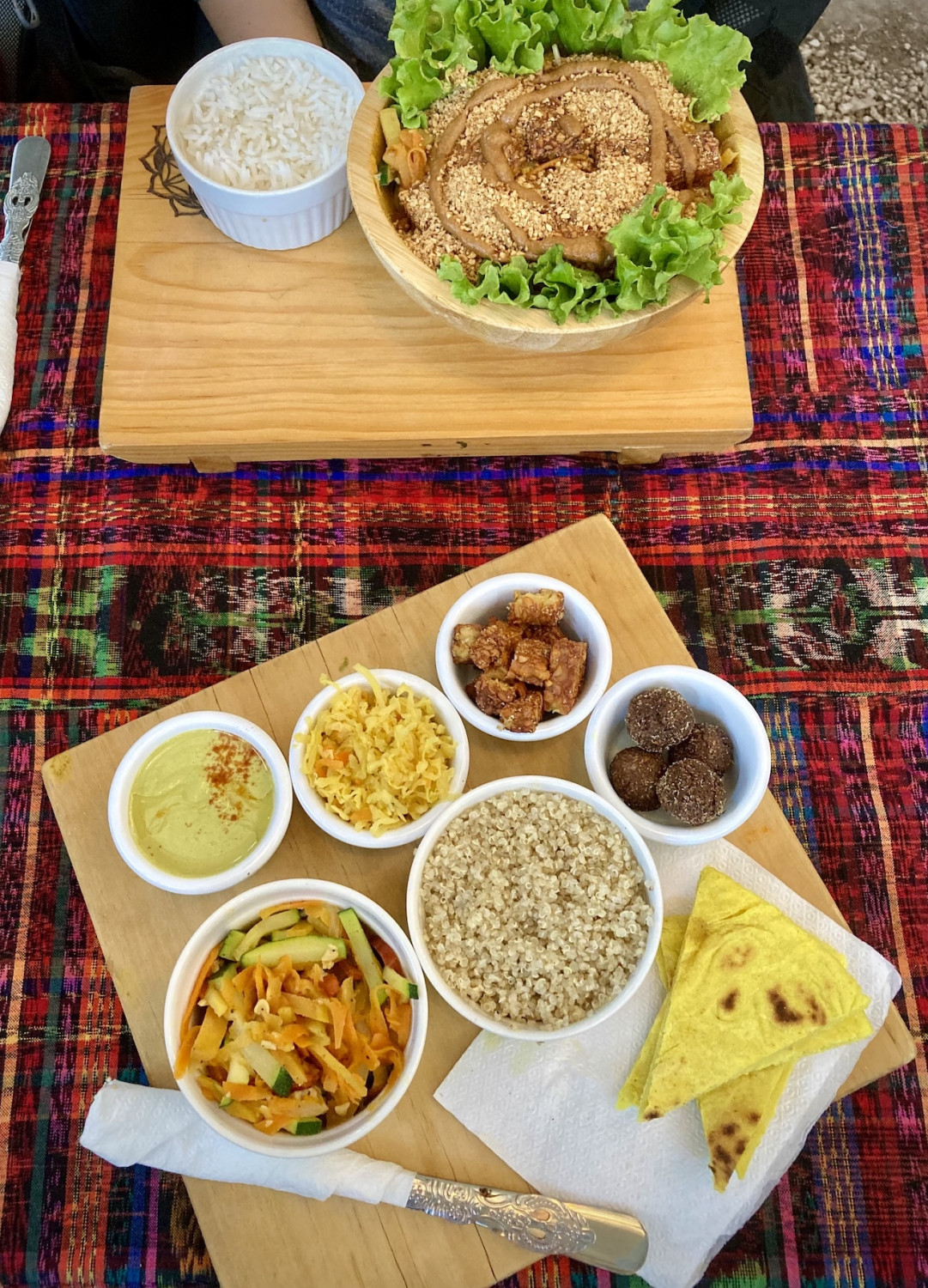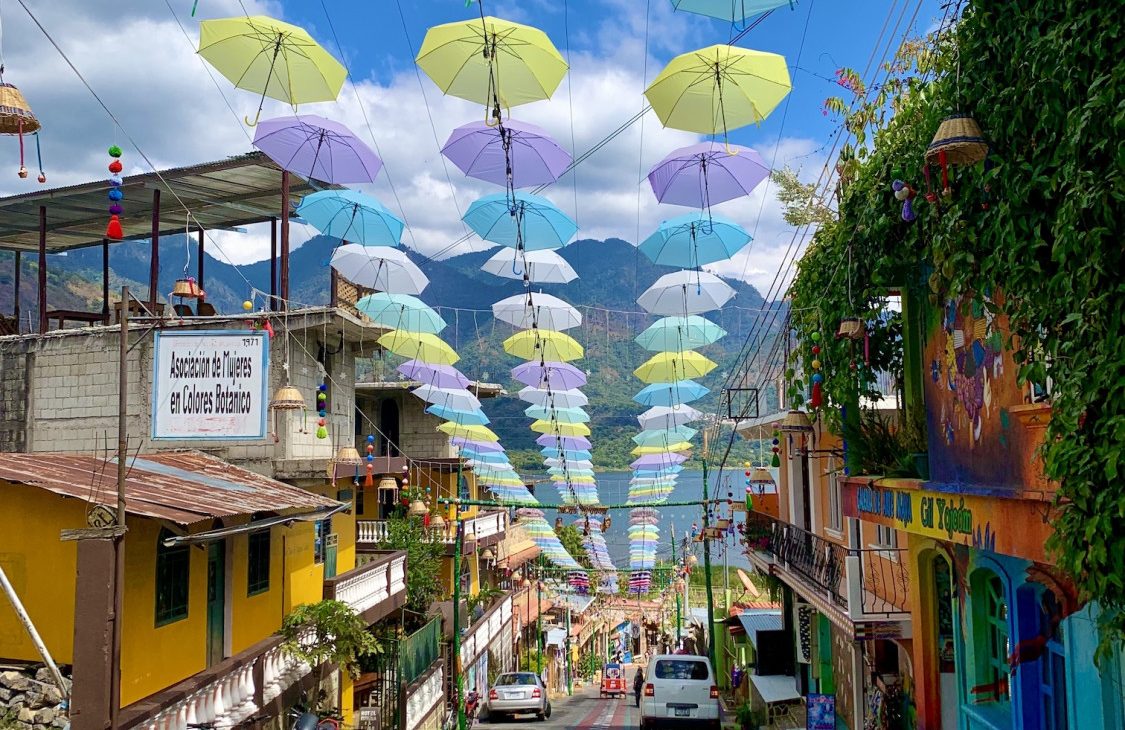 ist als Hippieort bekannt und man erreicht ihn für 15Qtz (knapp 2 Euro) mit dem Boot von San Pedro. Neben vielerlei Leckereien, vor allem vegan/vegetarisch & Superfoods, gibt es hier an jeder Ecke irgendein Art von Retreat. Yoga, Selbstfindung, Tanzkreis, Gesang, Kakaozeremonien etc…. es herrschen somit sehr spezielle Vibes und Locals sieht man hier eher selten. Wenn man auf so gesunden Kram abfährt, also lieber etwas mehr Geld mitnehmen, denn der Einkaufsbeutel ist hier schneller voll, als man denkt ;). Weiterhin gibt es einen Mirador, dessen Öffnungszeit (bis 16Uhr) wir leider verpasst haben. Vom Hotel de Dragen hat man jedoch ebenfalls einen tollen Blick auf die andere Seite des Sees. Für einen Tagesausflug und lecker Essen auf jeden Fall einen Besuch wert! Empfehlung Restaurant mit Garten – hier kann man den leckeren Hauskombucha auch in die eigene Flasche abfüllen lassen.