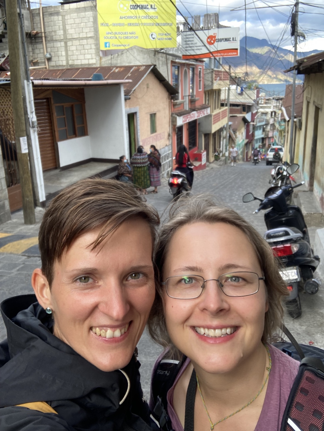 Das war quasi immer die erste Anlaufstelle für uns zum einkaufen oder essen gehen. Schön bunt ist es hier, überall Wandbilder, die die Geschichte Guatemalas erzählen, kleine süße Straßen mit kleinen leckeren Cafés & Restaurants uuuund gaaaanz viele Tuktuks sowie Motorräder. In Summe also recht lebendig hier. Unser Lieblingsladen war ein selbsternannter Ökoladen, wo es mal wieder allen geilen Scheiß von Quinoa, über vegane Bratlinge und frische Bagels bis hin zu selbstgemachter Erdnussbutter gab. Kurz: Hier gab es wirklich alles, weshalb ich mich auch kurzer Hand entschied, mal was zu backen Kekse! Yeah! Im Supermarkt gibts sonst immer nur die gleichen. Mittlerweile hatten wir gefühlt schon alle Sorten durchprobiert. Über dem Laden gab es ein veganes Restaurant mit leckerem Futter, aber leider etwas langsamen Bedienung. Da kam das Essen schon mal vor dem Getränk und die Beilage nach dem Hauptgang. Naja so ist das hier halt – alles anders . 😉 Abends verkaufte ein Nicht Guatemalteke mit zwei großen Thermoskannen leckeren selbstgemachten Chai-Tee. Nach Sonnenuntergang kommt so etwas Wärmendes ganz recht. Jedenfalls kann man hier allgemein gut essen, trinken und auch Party machen. Jedenfalls klang es danach 😉