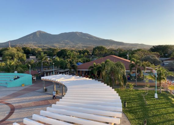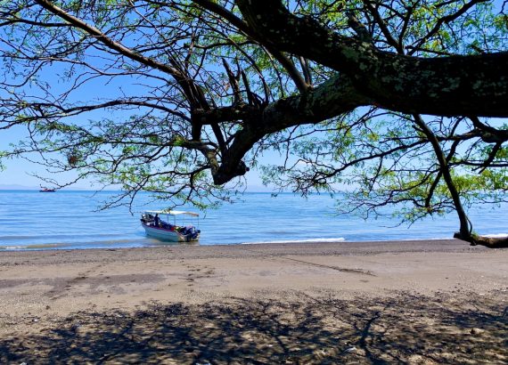 Nach einem sehr groben Check unseres Gepäcks gings weiter durch ein wüstenähnliches Gebiet mit Pferdchen und Schweinchen zum Immigrationsoffice ohne fließend Wasser & einem Klo, bei dem man den Deckel lieber zu lässt. Zum Glück haben wir wohl die 1,5 Liter getrunkenes Wasser komplett ausgeschwitzt, während wir 2h auf 7 Pässe warteten… Das scheint momentan Standard an der nicaraguanischen Grenze zu sein, egal ob Andrang ist oder nicht. (Immerhin sparten wir uns die Grenze von Honduras, die beim Landgang noch dazu gekommen wäre – und da haben wir Stories gehört….) Währenddessen pflückte uns ein anderer netter (vermutlicher) Mitarbeiter Mangos vom Baum, die wir mit einem Leuchten in den Augen und mehreren mhhhhs auf den Lippen dankend verspeisten.