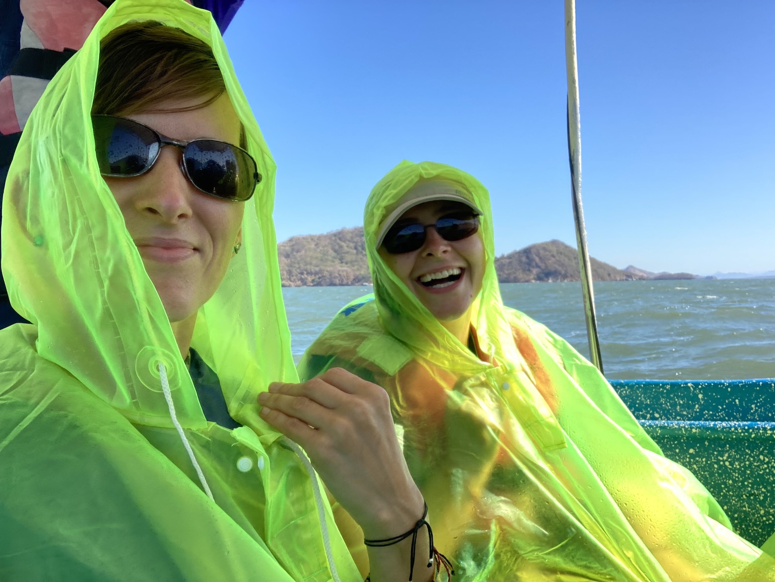 Finally gab es endlich die 2,5h „Sightseeingbootsfahrt“ durch den Golfo de Foncera & das „Bermudadreieck“ von Honduras, Nicaragua und El Salavador. Es war spritzig, wellig, windig & spaßig und wir waren wie Marsmännchen eingepackt Das war ganz sicher ein Bild für die Götter: