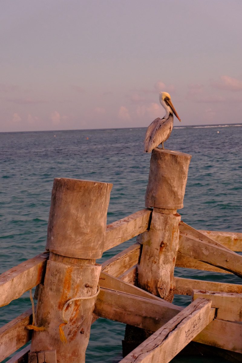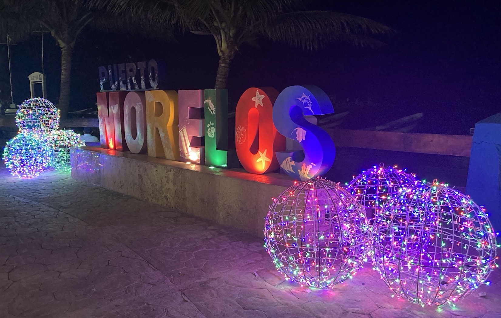 Insgesamt fanden wir Puerto Morelos zauberhaft und mochten das karibisches Flair. Wir können nicht behaupten, dass es nicht auf den Tourismus ausgelegt ist – wir wurden regelmäßig angequatscht, ob wir nicht etwas kaufen oder eine Tour buchen wollen, aber ein freundliches “no, gracias” reichte meist aus. Abends gingen wir immer wieder gern zum zentralen Platz, dort war es schön beleuchtet – auch die erste Weihnachtsbeleuchtung blinkte vor sich hin. Es gab immer wieder Musik, kleine Essenstände und Mitternachtsmärkte. Man konnte sich gemütlich hinsetzen, die Stimmung genießen und lustige Vögel beobachten. Sowohl Mensch als auch Tiere ;). Für uns war es ein guter Start auf dem neuen Kontinent!